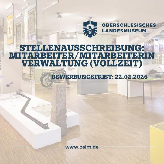 Zur Verstärkung des Verwaltungsteams im Oberschlesischen Landesmuseum in Ratingen wird eine engagierte Persönlichkeit mit hoher organisatorischer Kompetenz und Erfahrung im Umgang mit Drittmitteln gesucht.Beginn: ab sofort Über die Einrichtung:Das Oberschlesische Landesmuseum ist…
